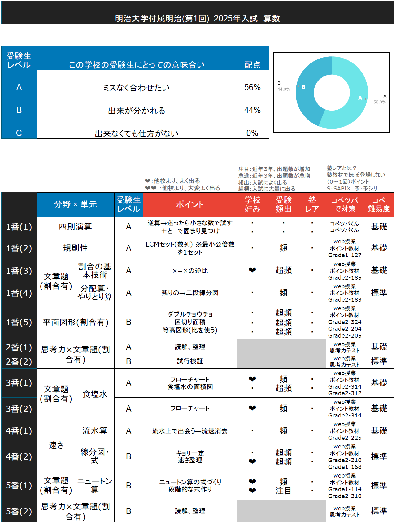 全体感を見ていくと、レベルAが約56%、レベルBが約44%とやや難しめの難易度構成となりました。