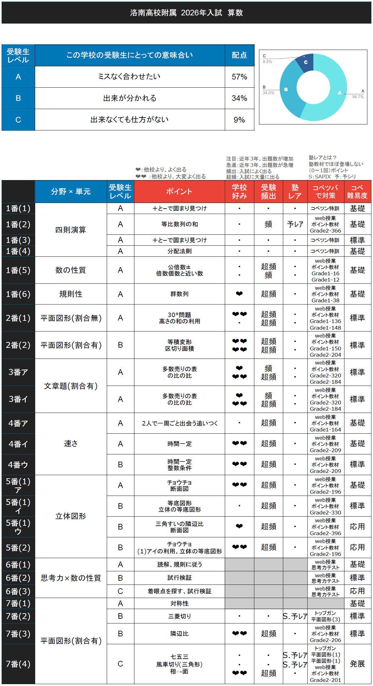 全体感としてはレベルAが約56%、レベルBが約34%、レベルCが10%という標準的な難易度構成のセットとなりました。