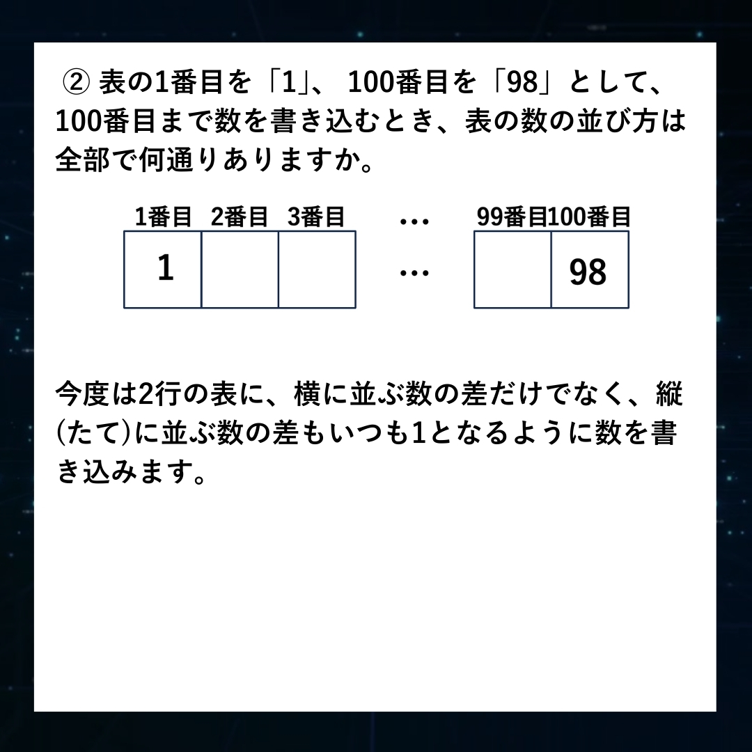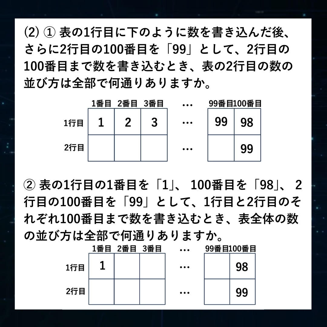 (2)①、2行目の先頭を0、1、2で場合分けすると求めることができます。