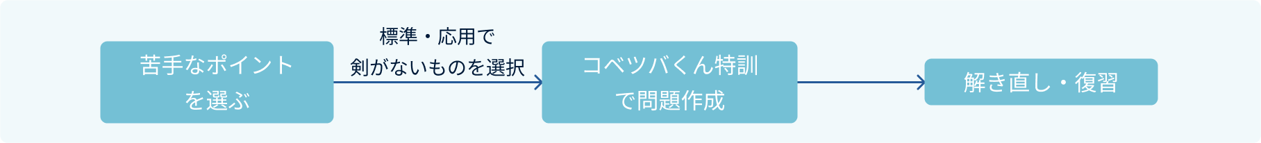 各ポイントの学習が完了したら、もっと練習を積んでおきたいポイントを選んで、コベツバくん特訓でトレーニングしておきましょう。