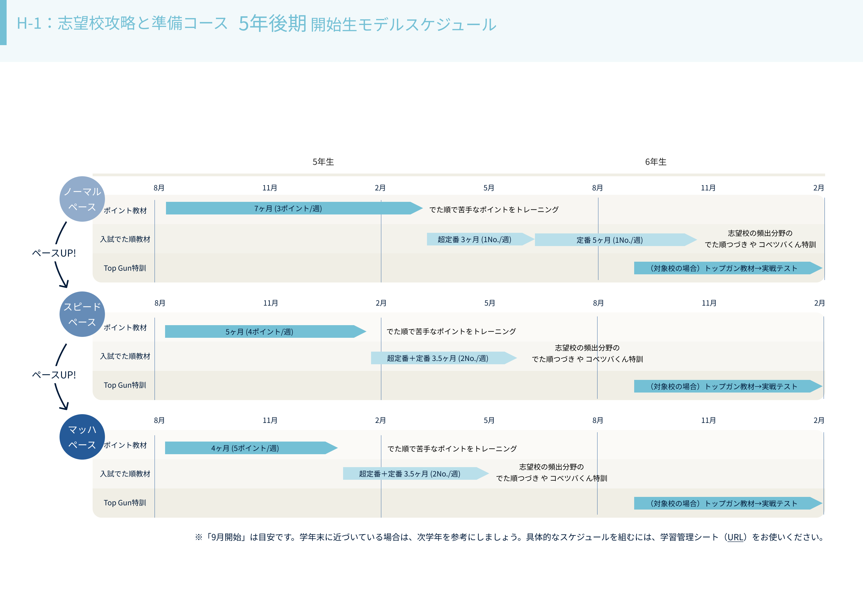 コベツバweb授業では、学習開始時期・偏差値帯・志望校などに合わせて、学習の進め方を「コース」としてご提案しています。本記事では、H-1:志望校攻略と準備コースの取り組みについてご案内します。