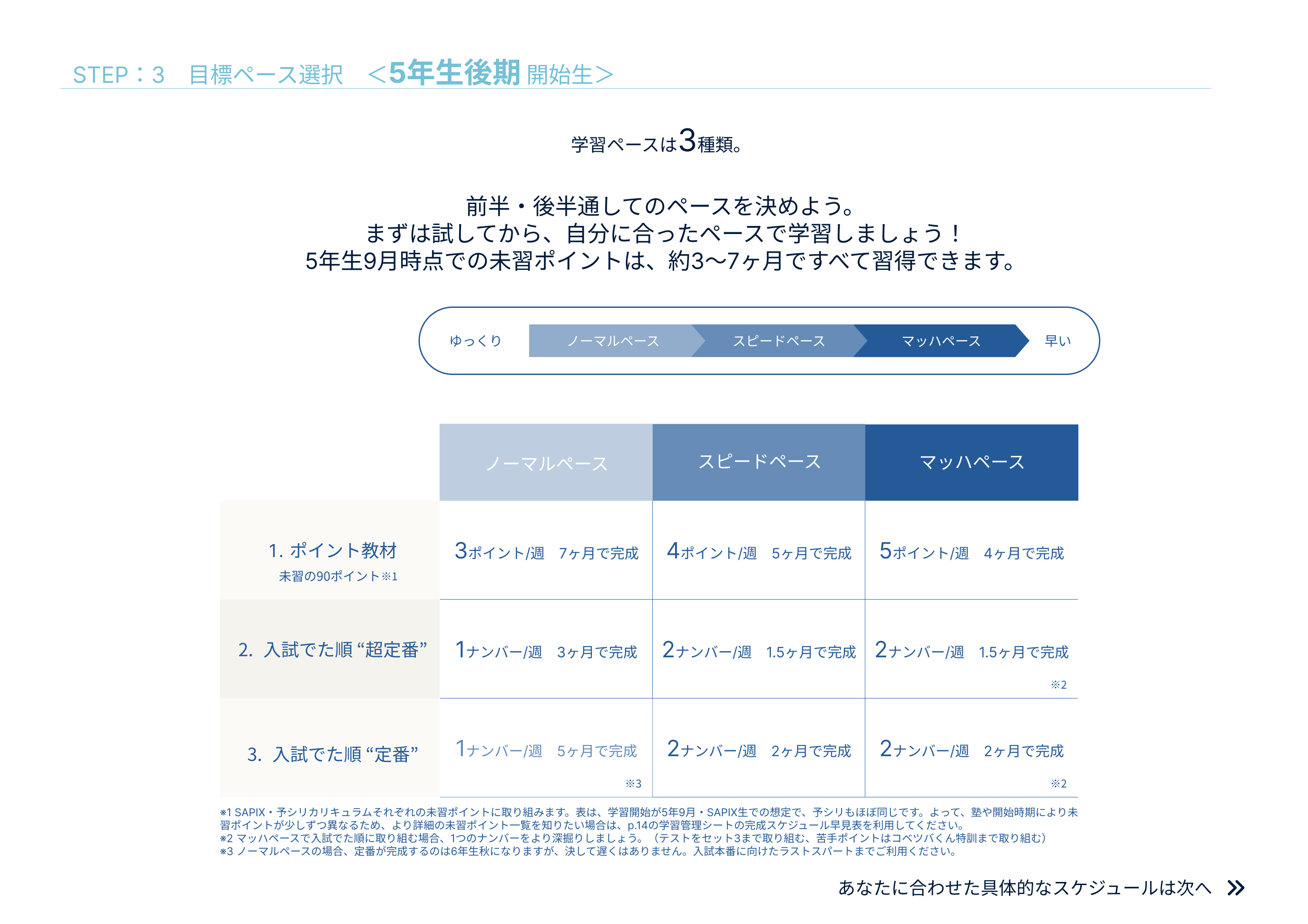 ペース選択とモデルスケジュール