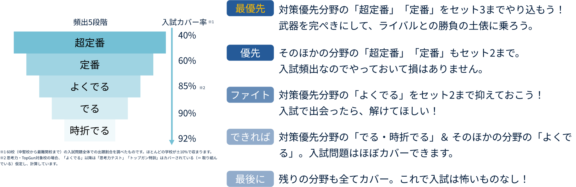 志望校対策の優先分野と「入試でた順教材」の頻出5段階を組み合わせて、優先順位をきめよう