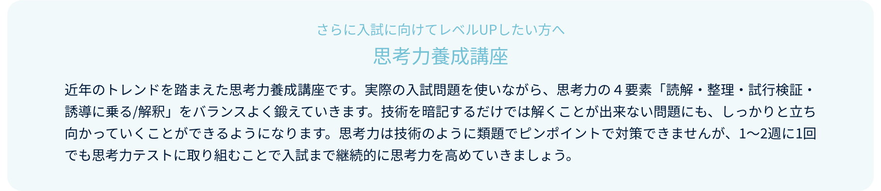 合格処方箋で、思考力問題の対策を勧められた際は、思考力テスト講座がおすすめです。