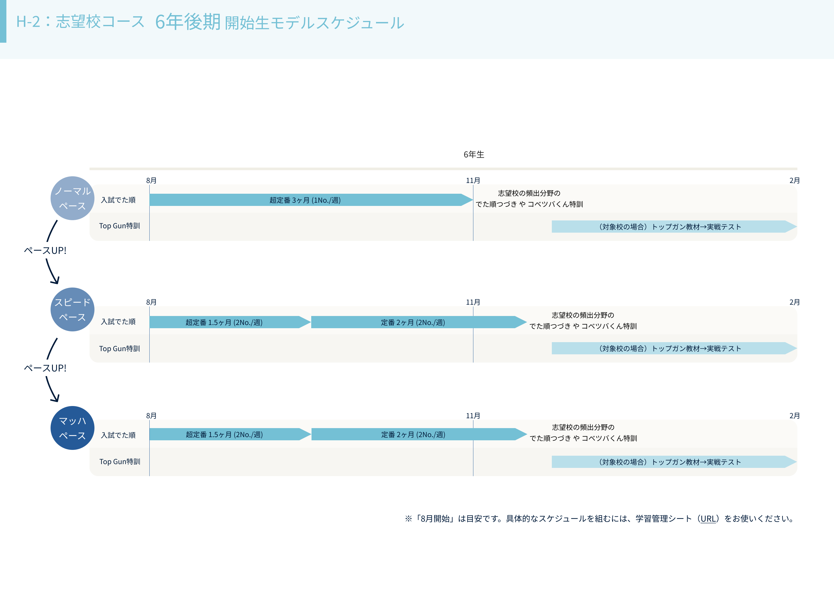 コベツバweb授業では、学習開始時期・偏差値帯・志望校などに合わせて、学習の進め方を「コース」としてご提案しています。本記事では、H-2:志望校攻略コースの取り組みについてご案内します。