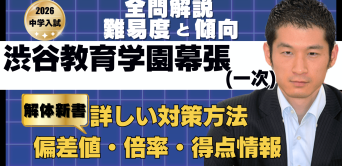 公開中!渋谷教育学園幕張中2026年度一次入試の算数全問解説動画と難易度分析・対策。入試基本情報を掲載中。