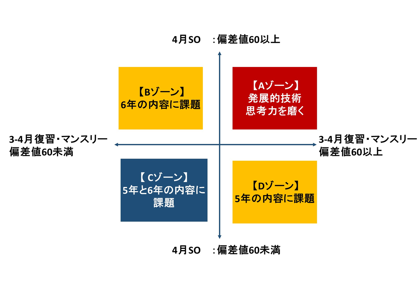 Bゾーン=SO 偏差値60以上、復習マンスリー偏差値60未満