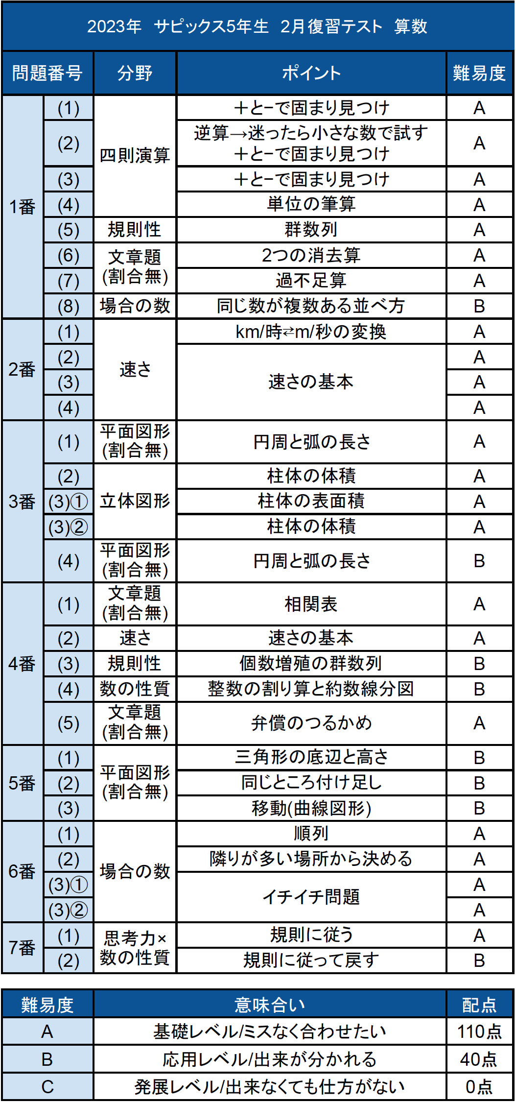 コベツバでは、2023年2月8日実施、サピックス5年生2月復習テストの算数解説・難易度・所感を公開中です。