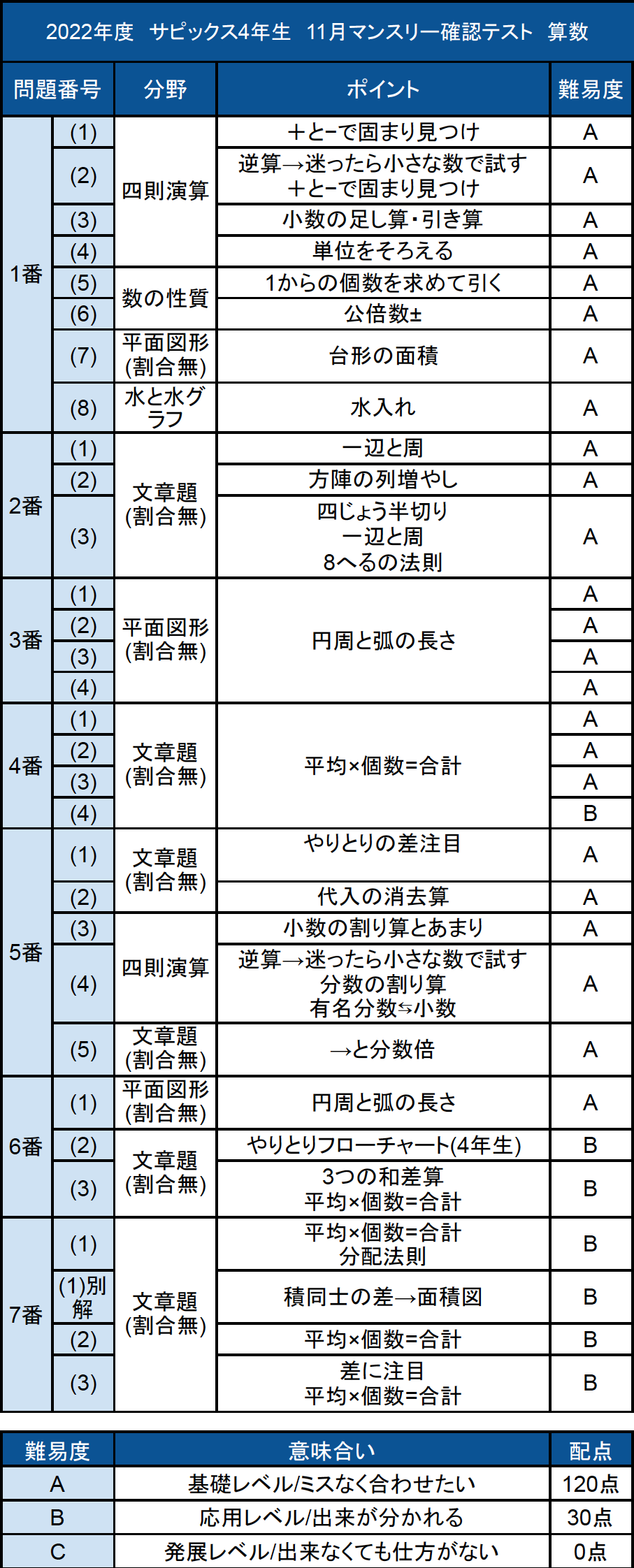 コベツバでは、2022年11月11日,15日実施、サピックス4年生11月マンスリー確認テストの算数解説・難易度・所感を公開中です。