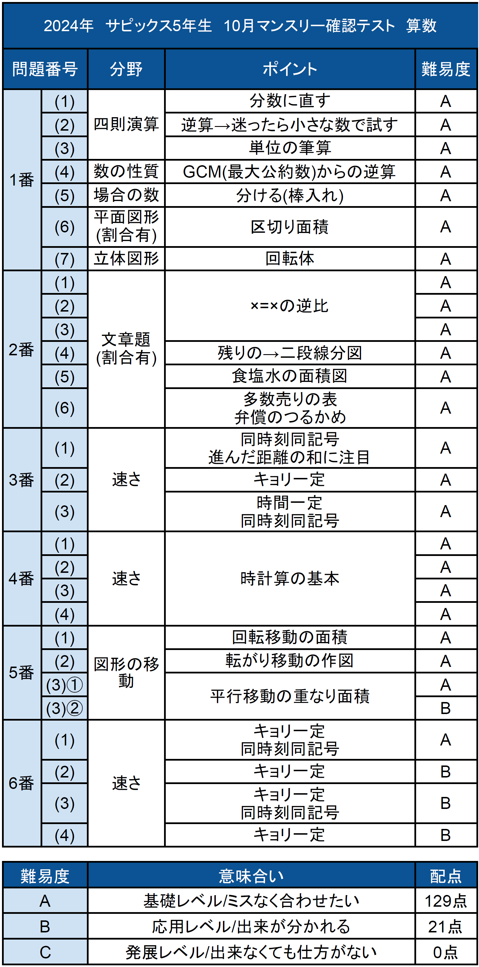 コベツバでは、2024年10月11日実施、 サピックス5年生 10月マンスリー確認テストの算数解説・難易度・所感を公開中です。