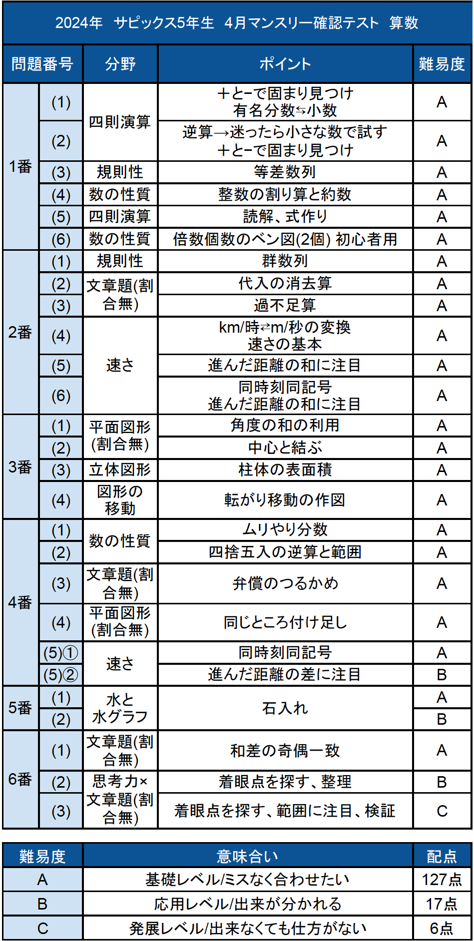 全体感としてはレベルAが127点、レベルBが17点、レベルCが最後の1問と比較的易し目の難易度セットとなりました。