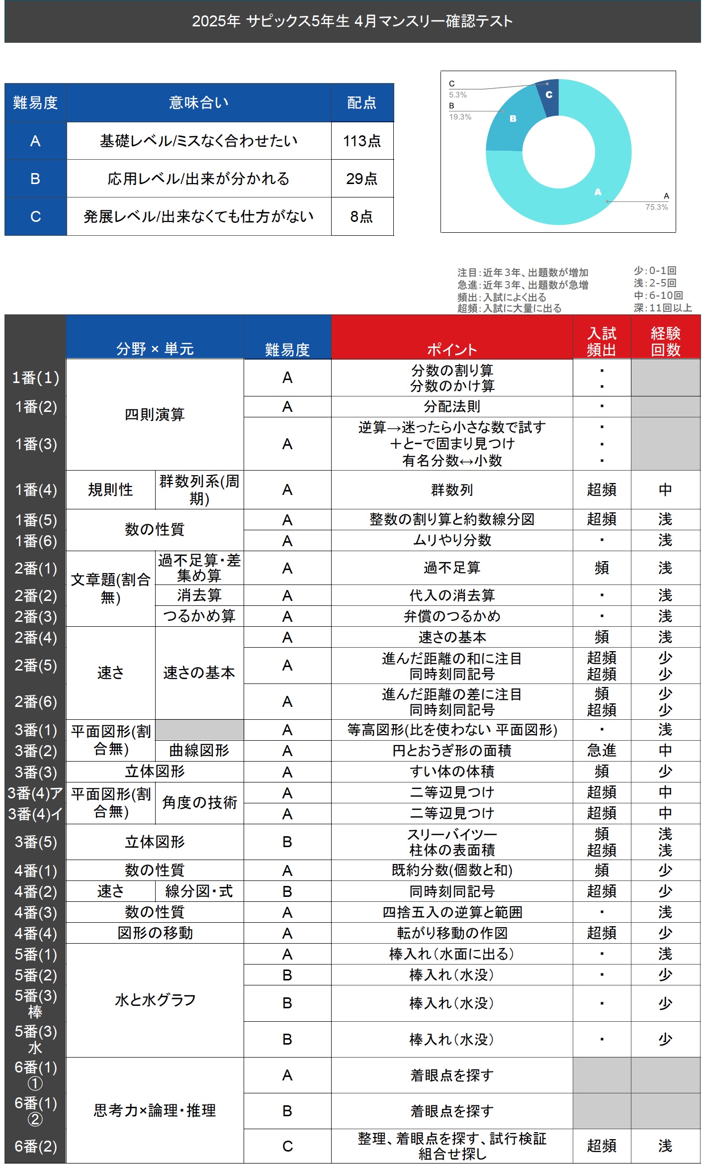 コベツバでは、2025年4月28日実施、 サピックス5年生 4月マンスリー確認テストの算数解説・難易度・所感を公開中です。