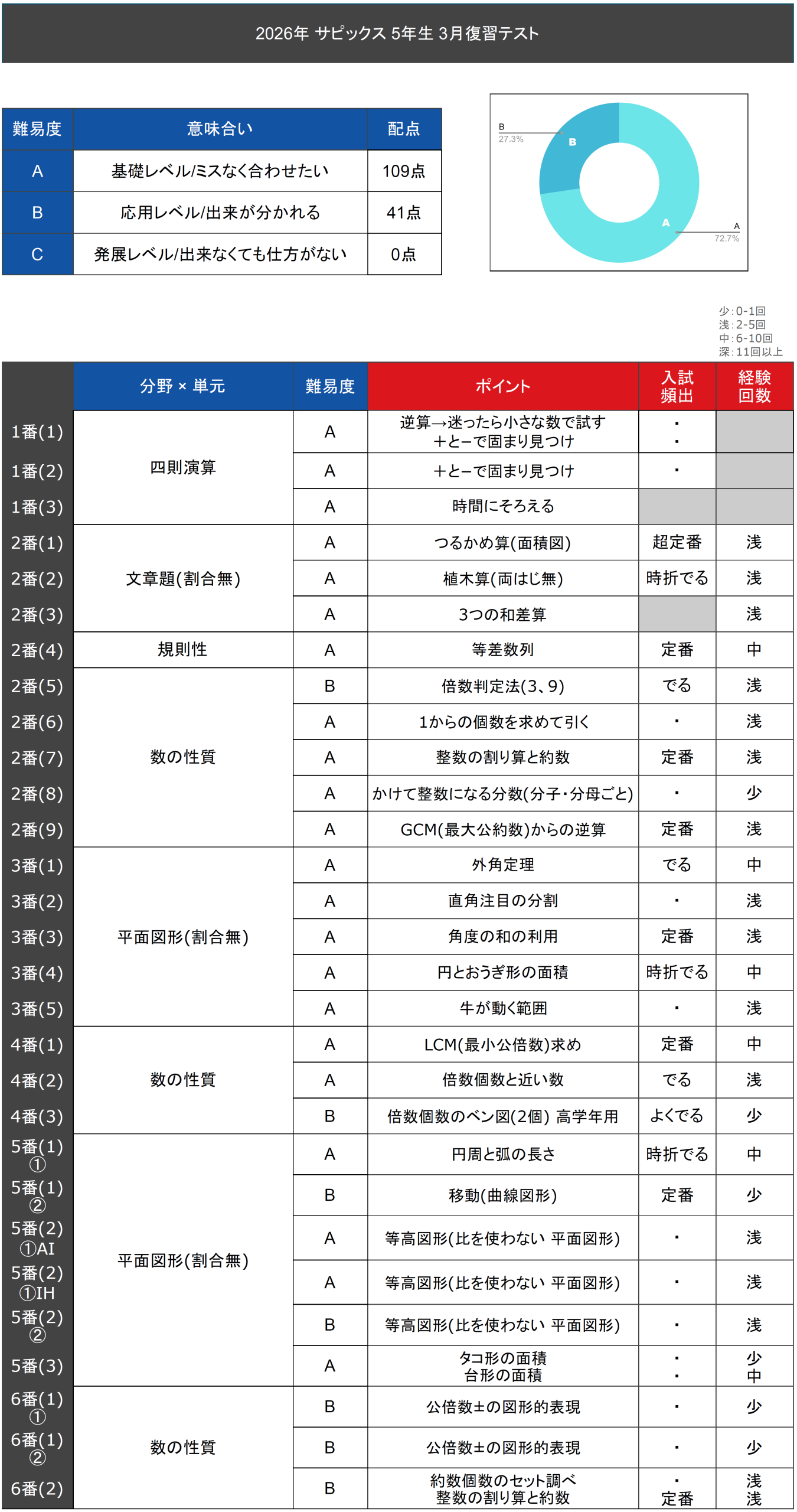 コベツバでは、2026年3月25日実施、 サピックス5年生 3月復習テストの算数動画解説・難易度・所感を公開中です。