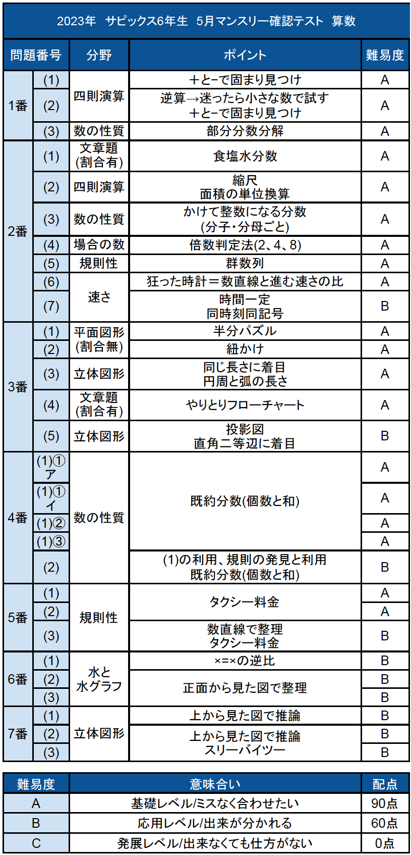 コベツバでは、2023年5月16日実施、サピックス6年生 5月マンスリー確認テストの平均点・対策・算数解説・難易度・所感を公開中です。