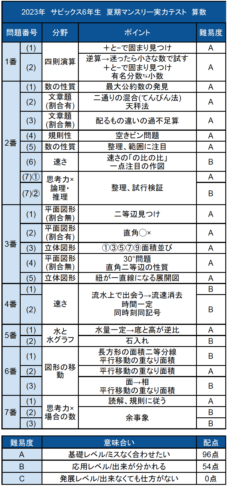 コベツバでは、2023年8月26日実施、 サピックス6年生夏期講習マンスリー実力テストの算数解説・難易度・所感を公開中です。