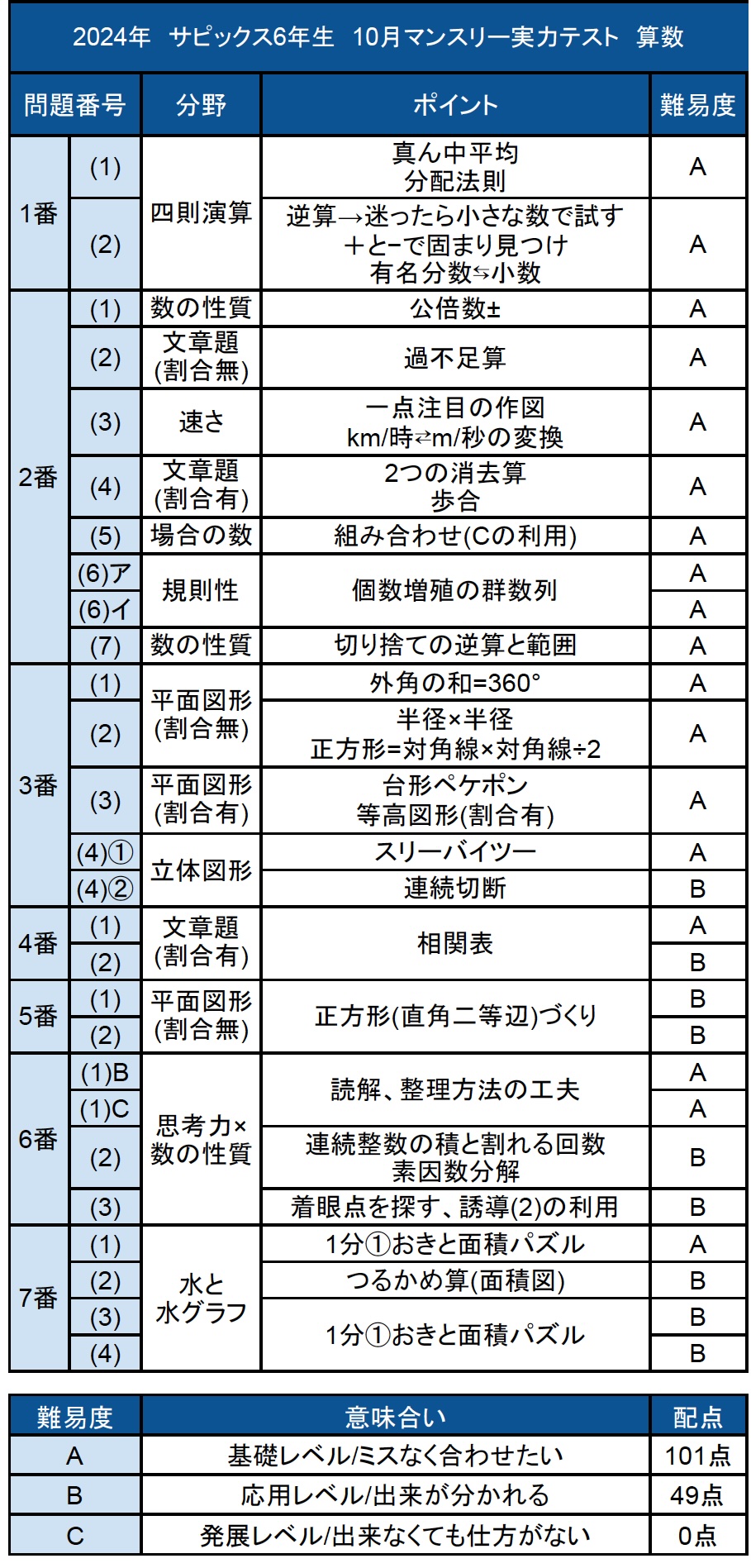 コベツバでは、2024年10月15日実施、 サピックス6年生10月マンスリー実力テストの算数解説・難易度・所感を公開中です。