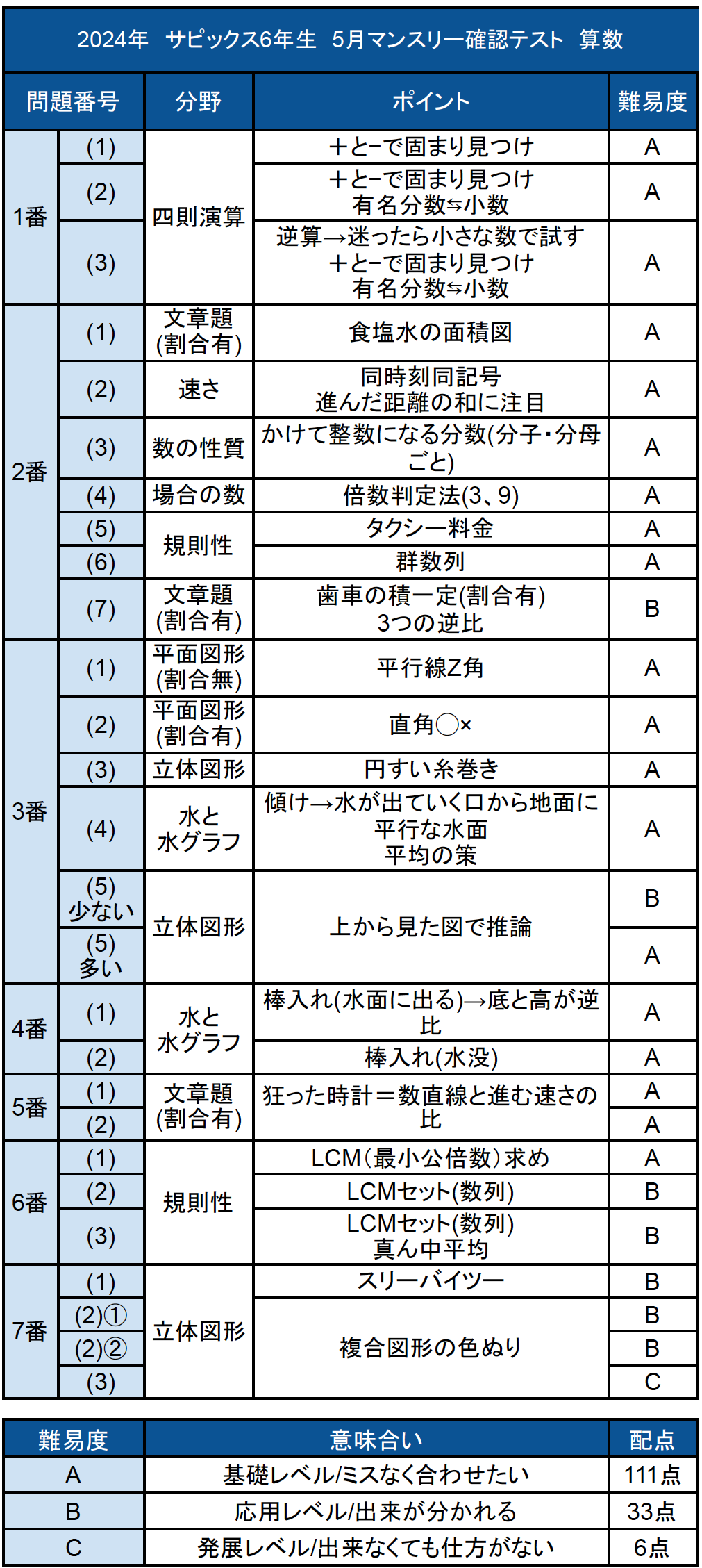 コベツバでは、2024年5月14日実施、 サピックス6年生5月マンスリー確認テストの算数解説・難易度・所感を公開中です。