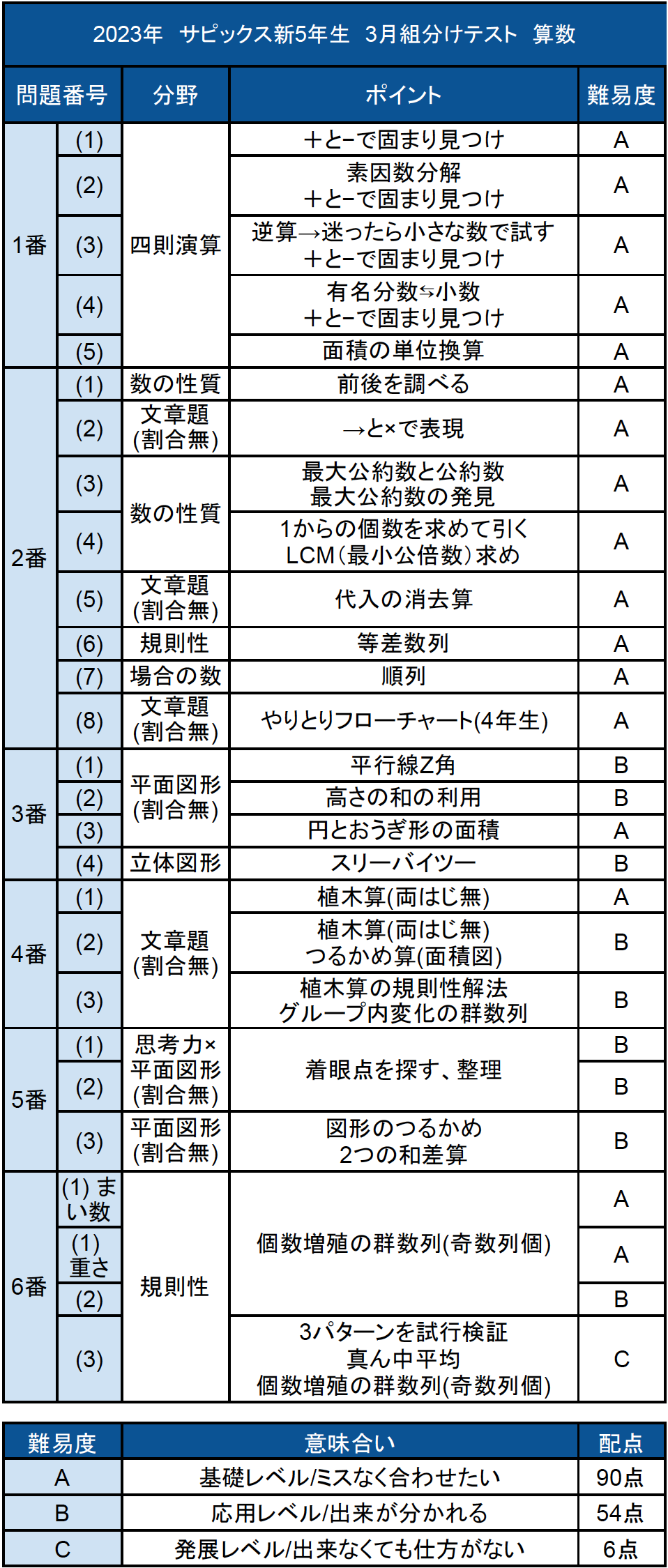 2023年3月5日実施、サピックス新5年生組分けテストの算数解説・難易度・所感、例年の平均点を公開します。