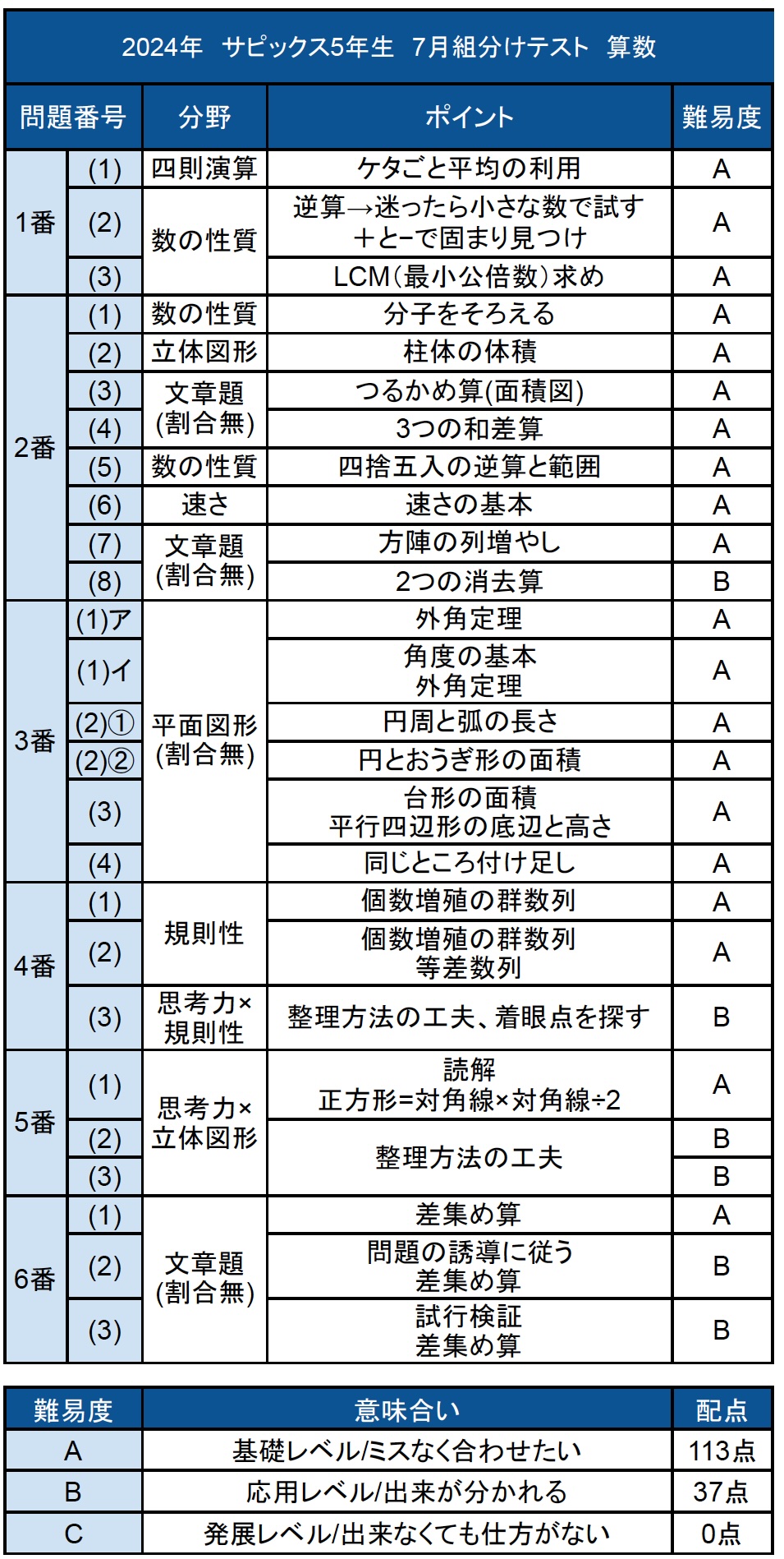 コベツバでは、2024年6月30日実施、 サピックス5年生 7月組分けテストの算数解説・難易度・所感を公開中です。