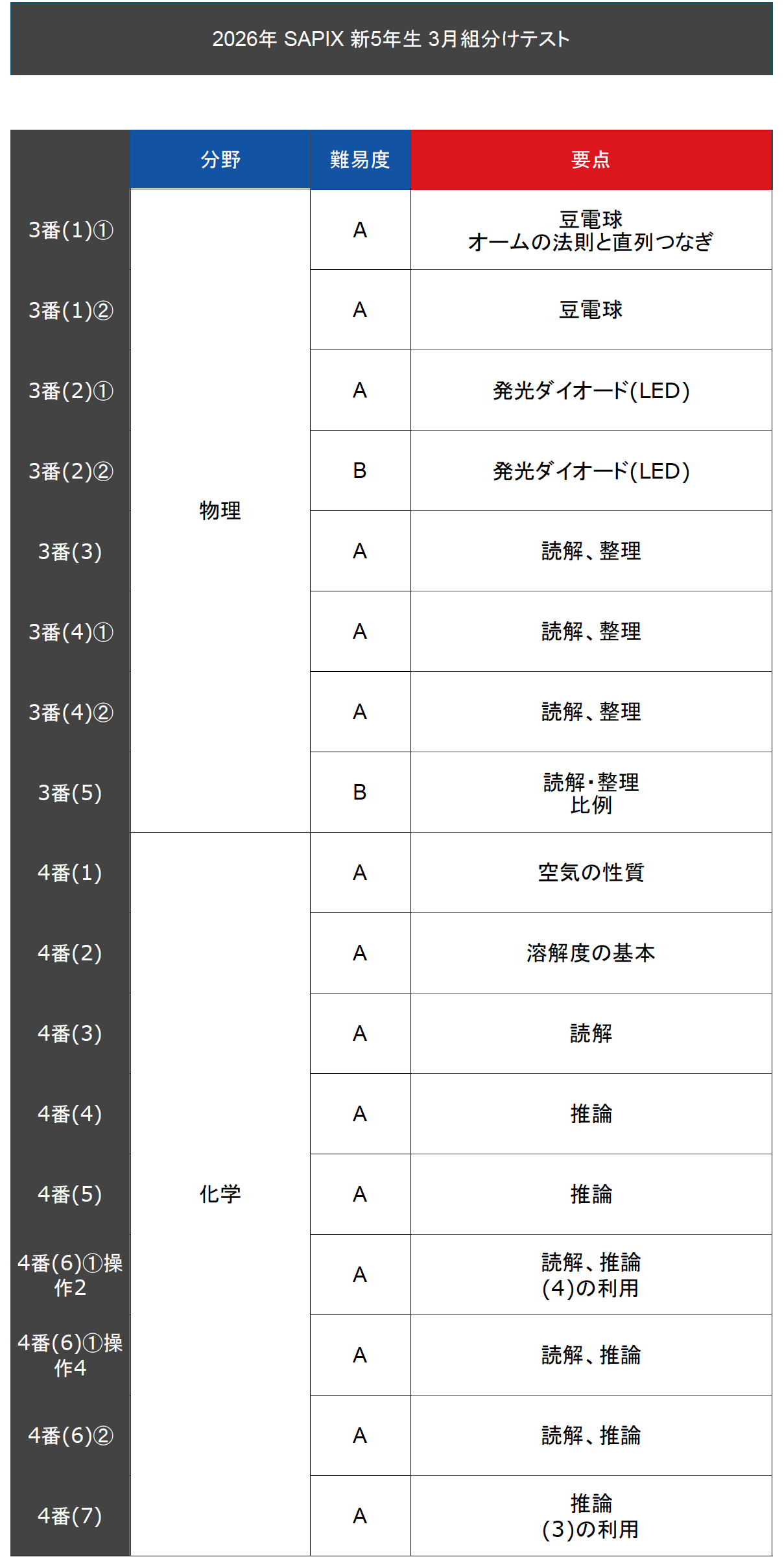 コベツバでは、2026年3月8日実施、 サピックス新5年生 3月組分け・入室テストの算数と理科の解説・難易度・所感を公開中です。