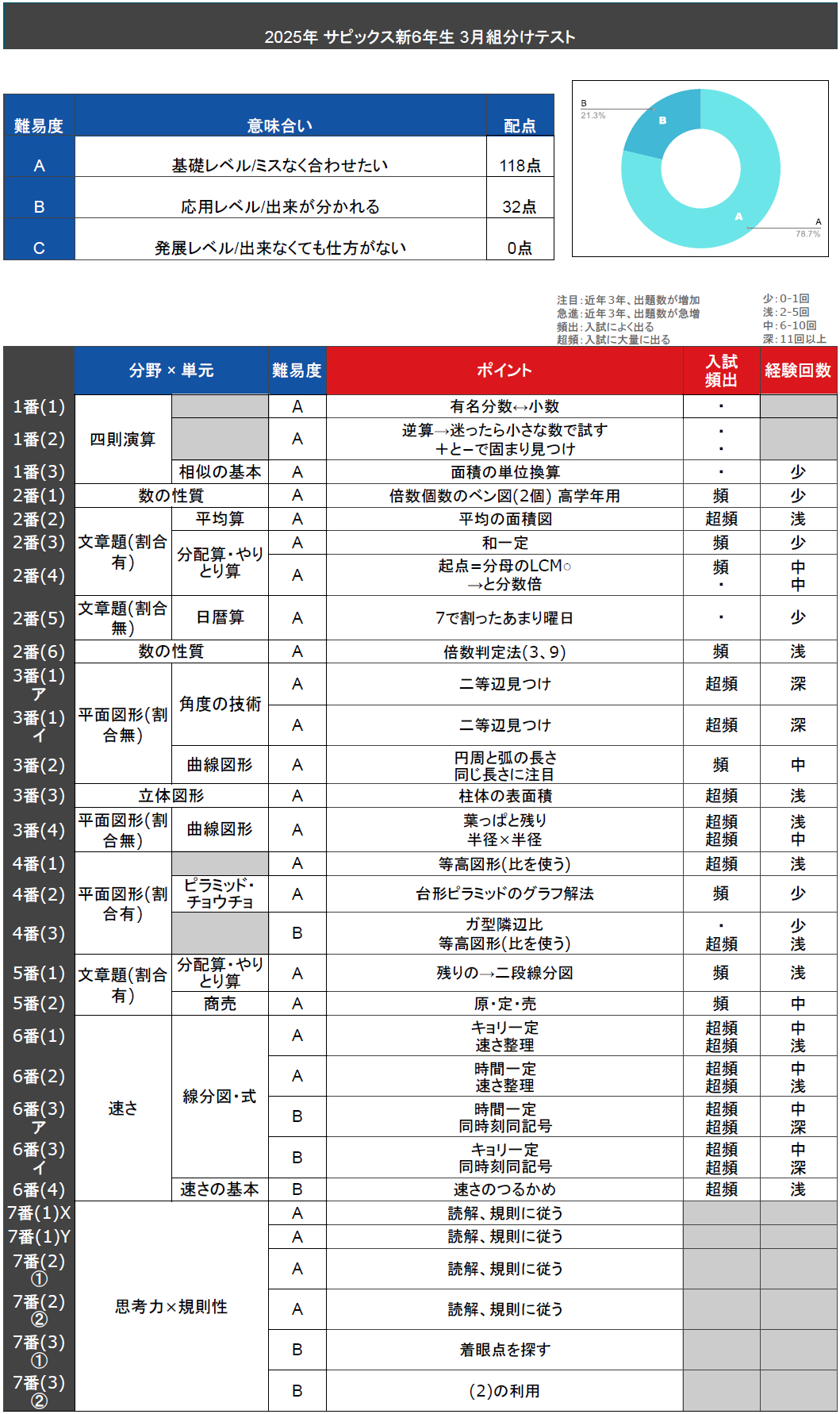 コベツバでは、2025年3月2日実施、 サピックス新6年生 3月組分け・入室テストの算数解説・難易度・所感を公開中です。