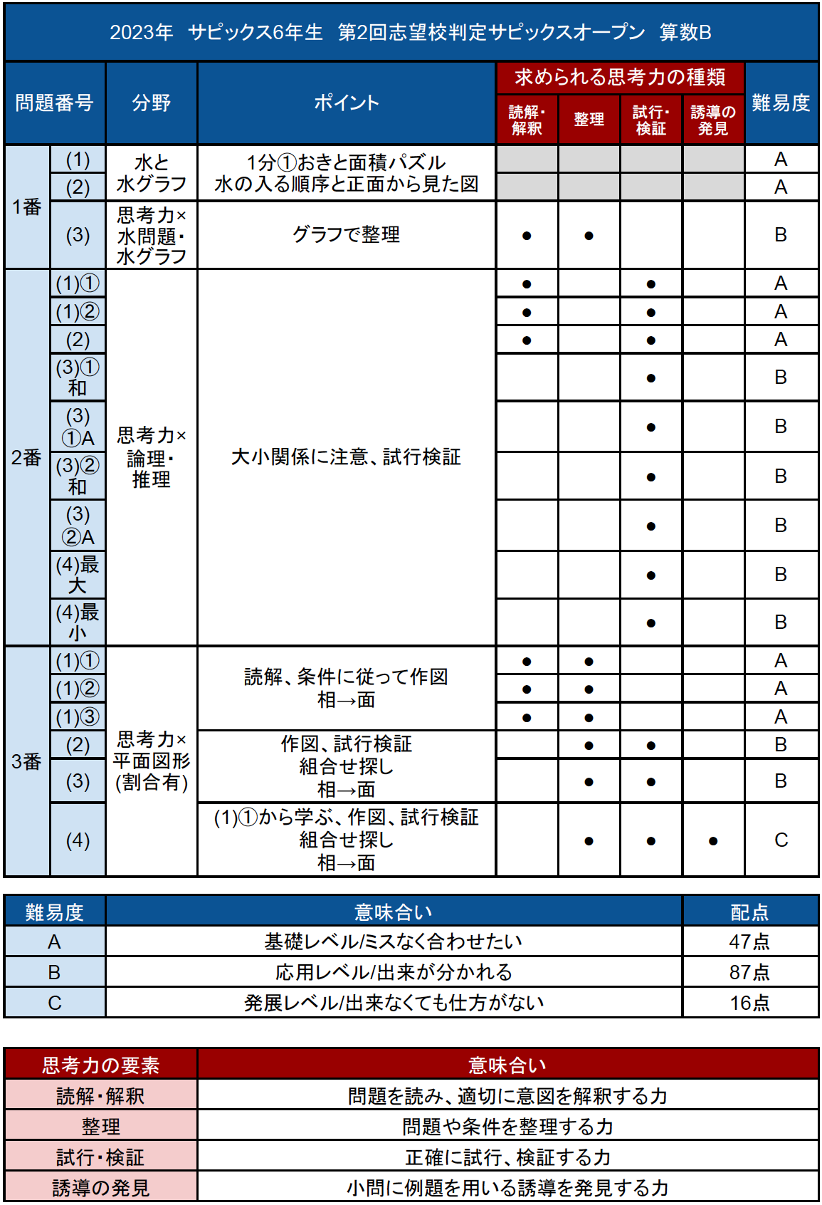 <算数B>第2回志望校判定サピックスオープンの難易度・所感
