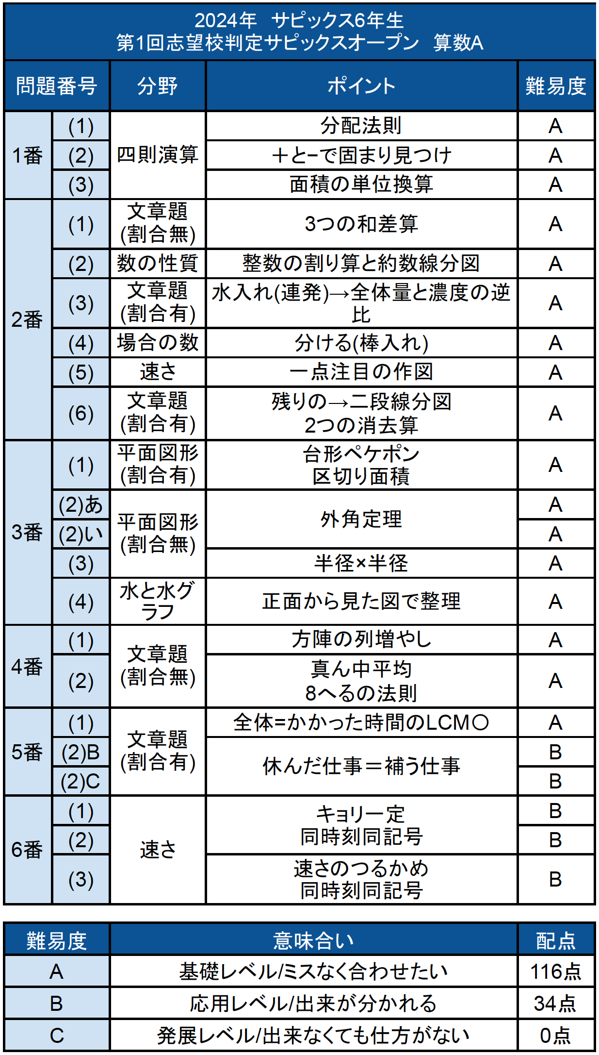 コベツバでは、 2024年4月14日実施、第1回志望校判定サピックスオープンの平均点・算数解説・難易度・所感を公開中です。