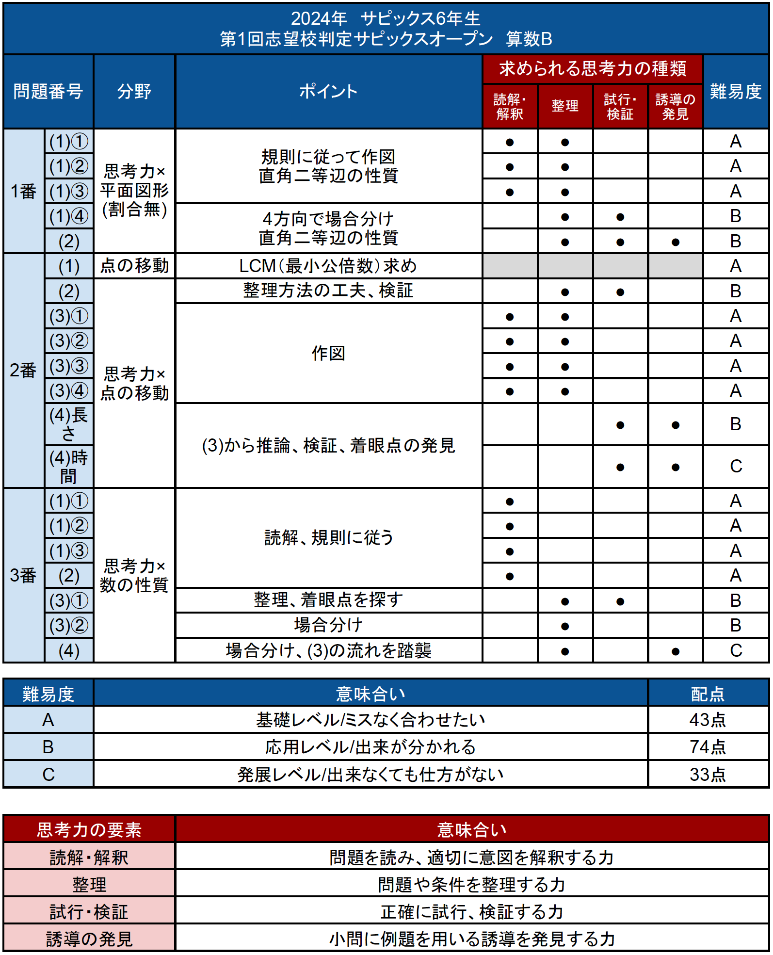 <算数B>第1回志望校判定サピックスオープンの難易度・所感
