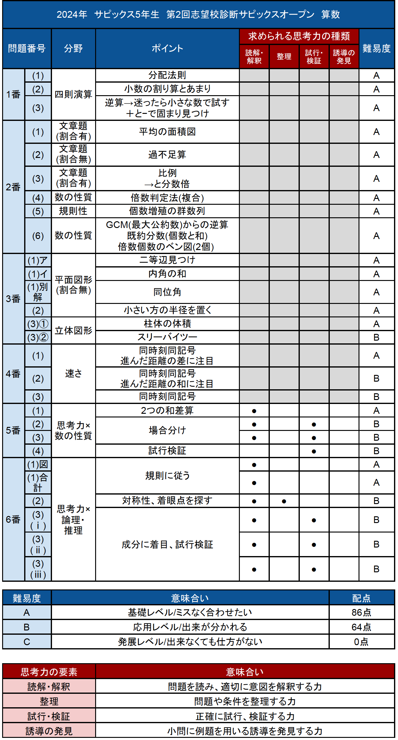 2024年9月1日実施、サピックス5年生 第2回志望校診断サピックスオープンの解説動画、難易度分析を公開中です。