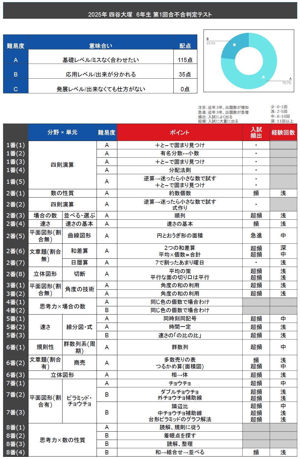 四谷大塚 第1回合不合判定テストの所感・難易度分析