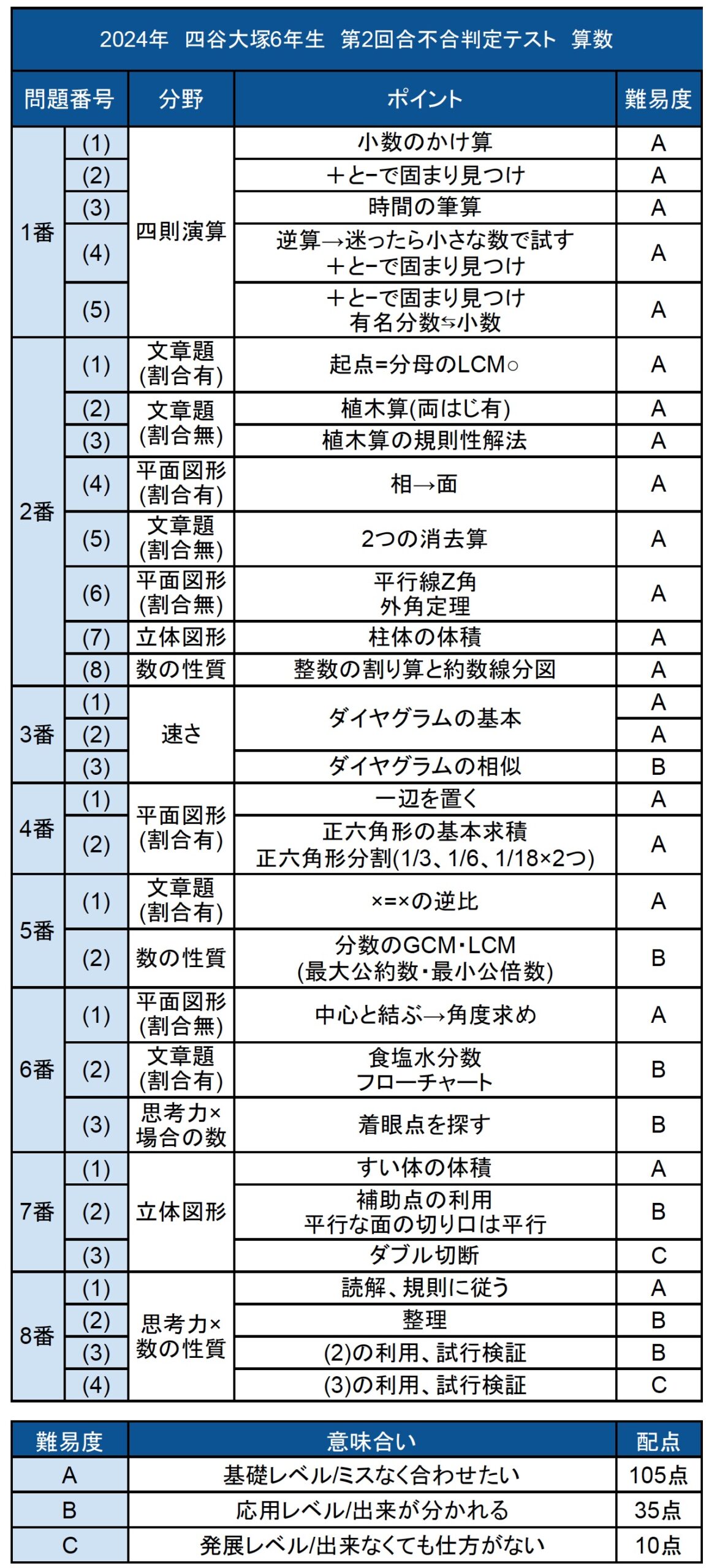 2024年6月30日実施、四谷大塚 第2回合不合判定テストの平均点・算数解説・難易度・所感を公開中です。