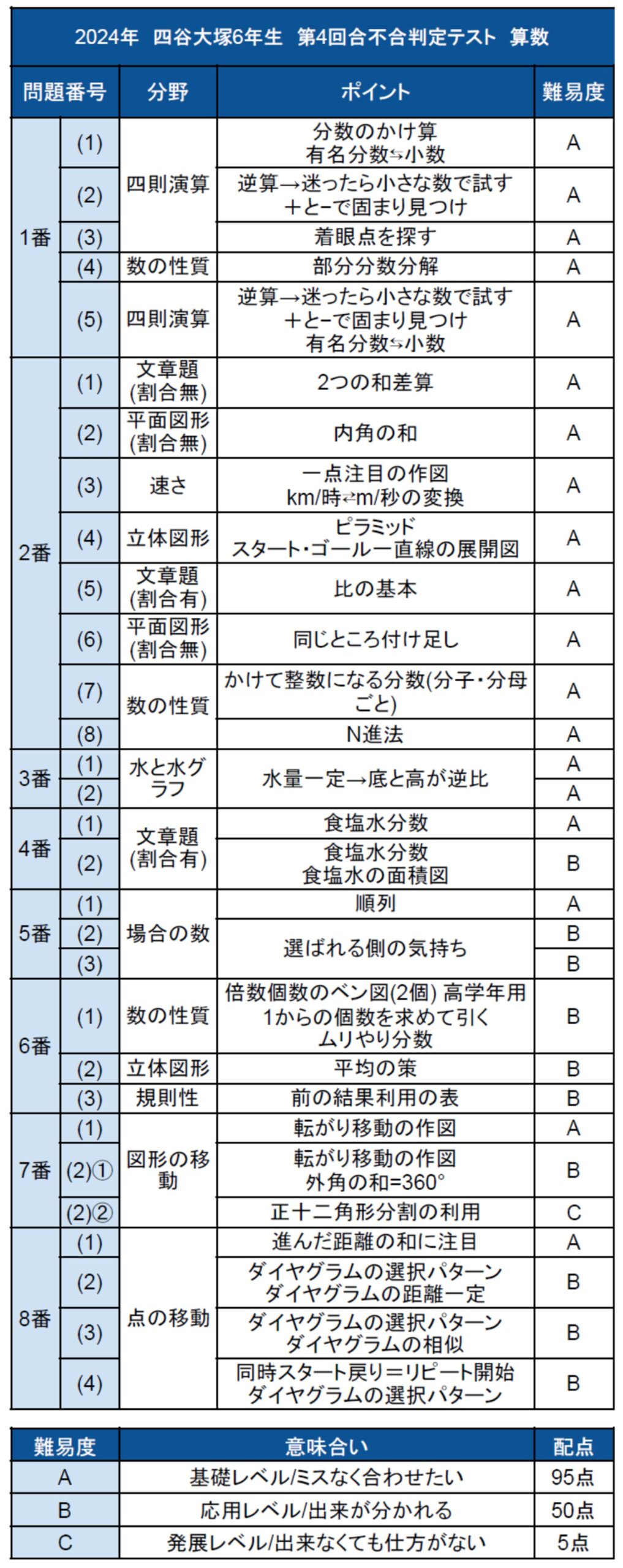 2024年10月6日実施、四谷大塚 第4回合不合判定テストの平均点・算数解説・難易度・所感を公開中です。