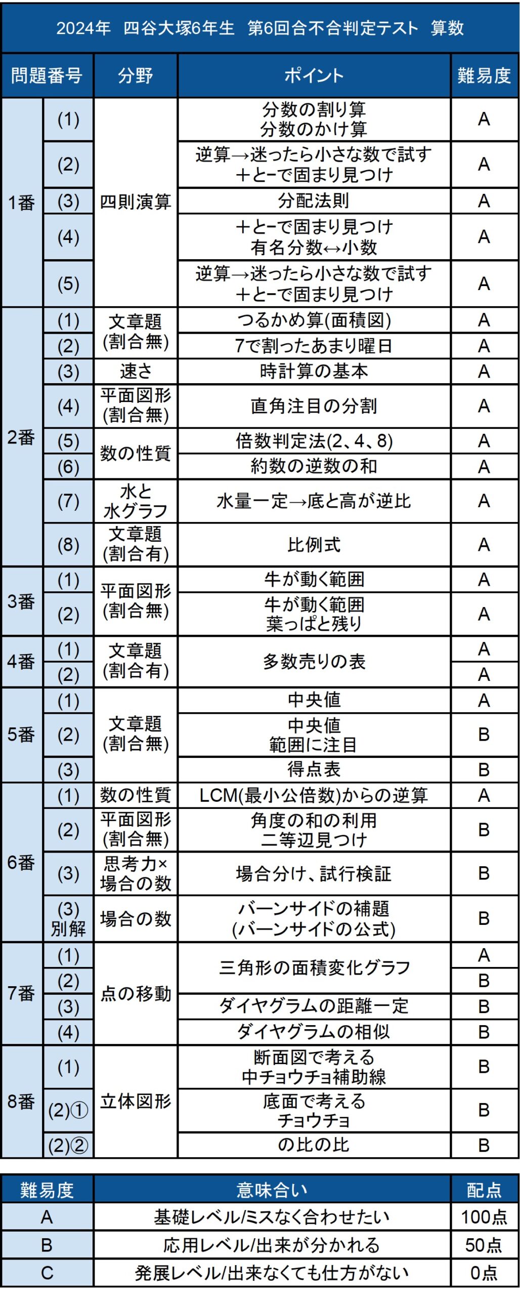 2024年12月1日実施、四谷大塚 第6回合不合判定テストの平均点・算数解説・難易度・所感を公開中です。
