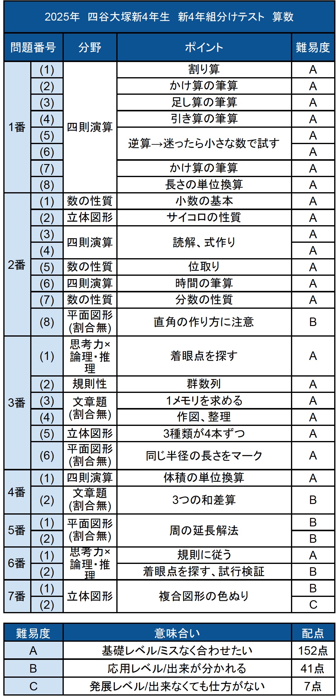 2025年1月25日実施、四谷大塚新4年生 新4年組分けテストの算数解説・難易度・所感を公開中です。