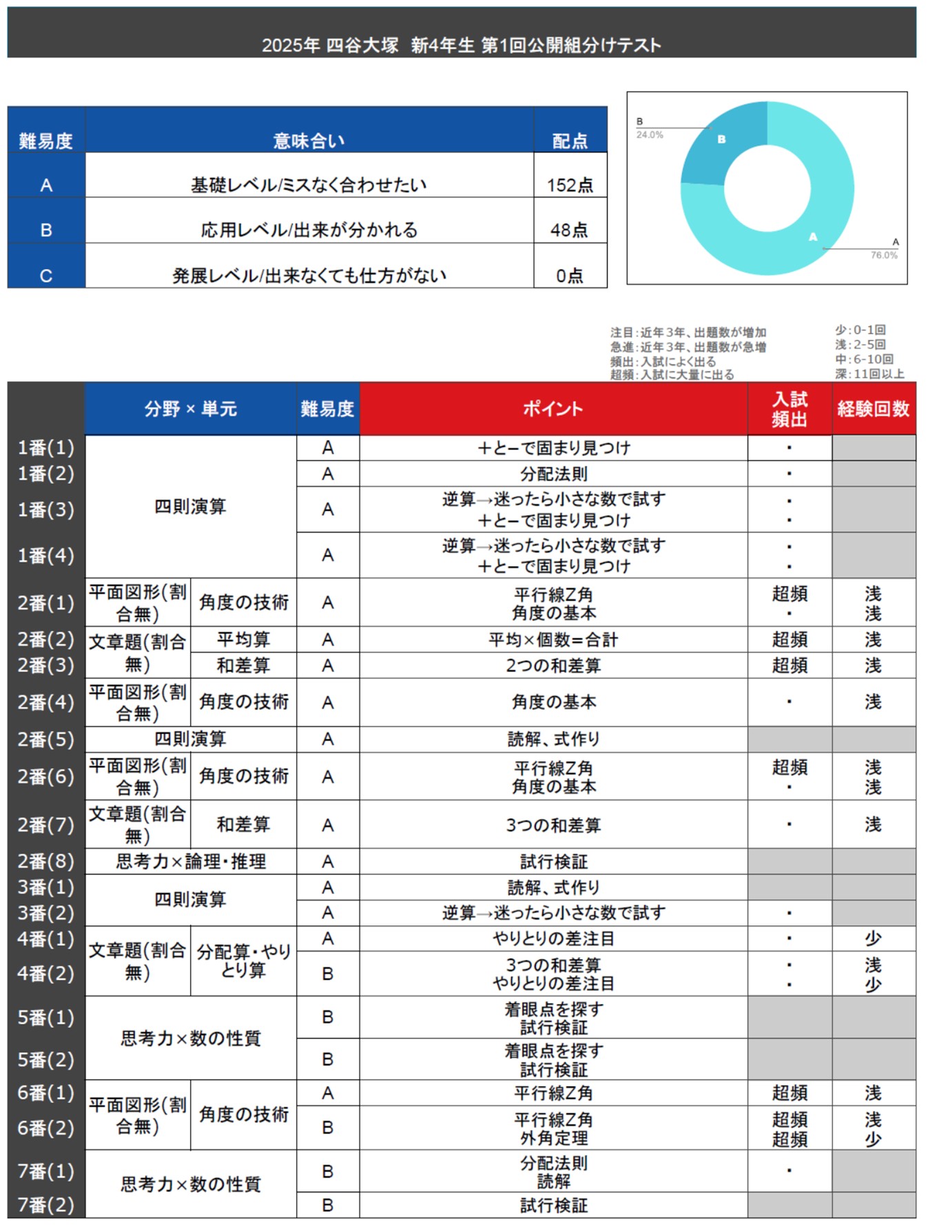 四谷大塚新4年生 第1回公開組分けテストの所感・難易度分析