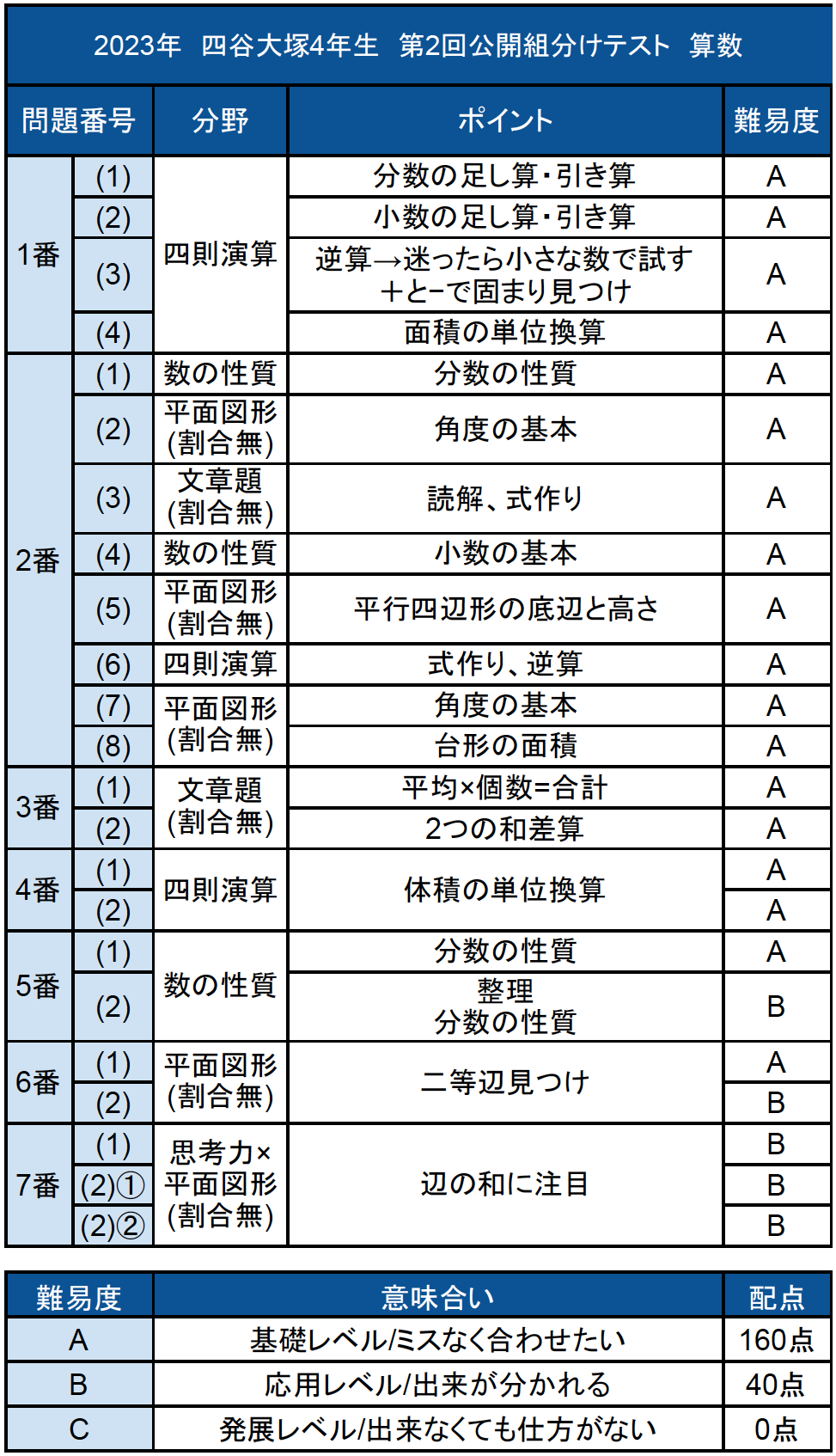 四谷大塚4年生 第2回公開組分けテストの所感・難易度分析