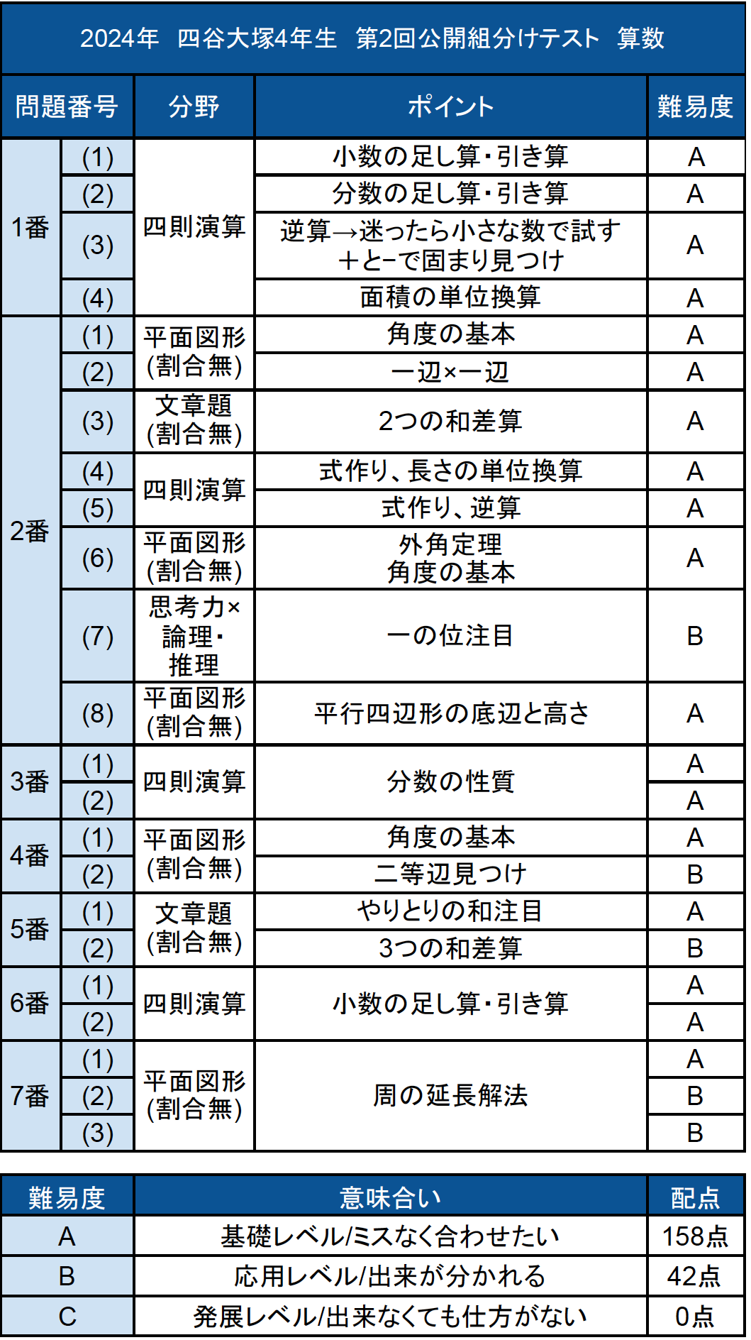 全体感としてはレベルAが158点、残りがレベルBと比較的易しめの難易度構成となりました。