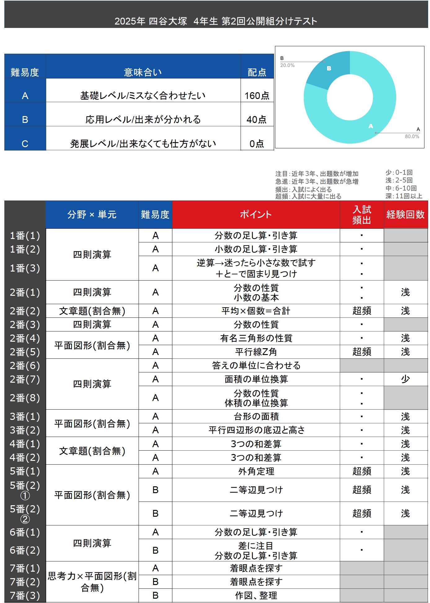 四谷大塚4年生第2回公開組分けテストの所感・難易度分析