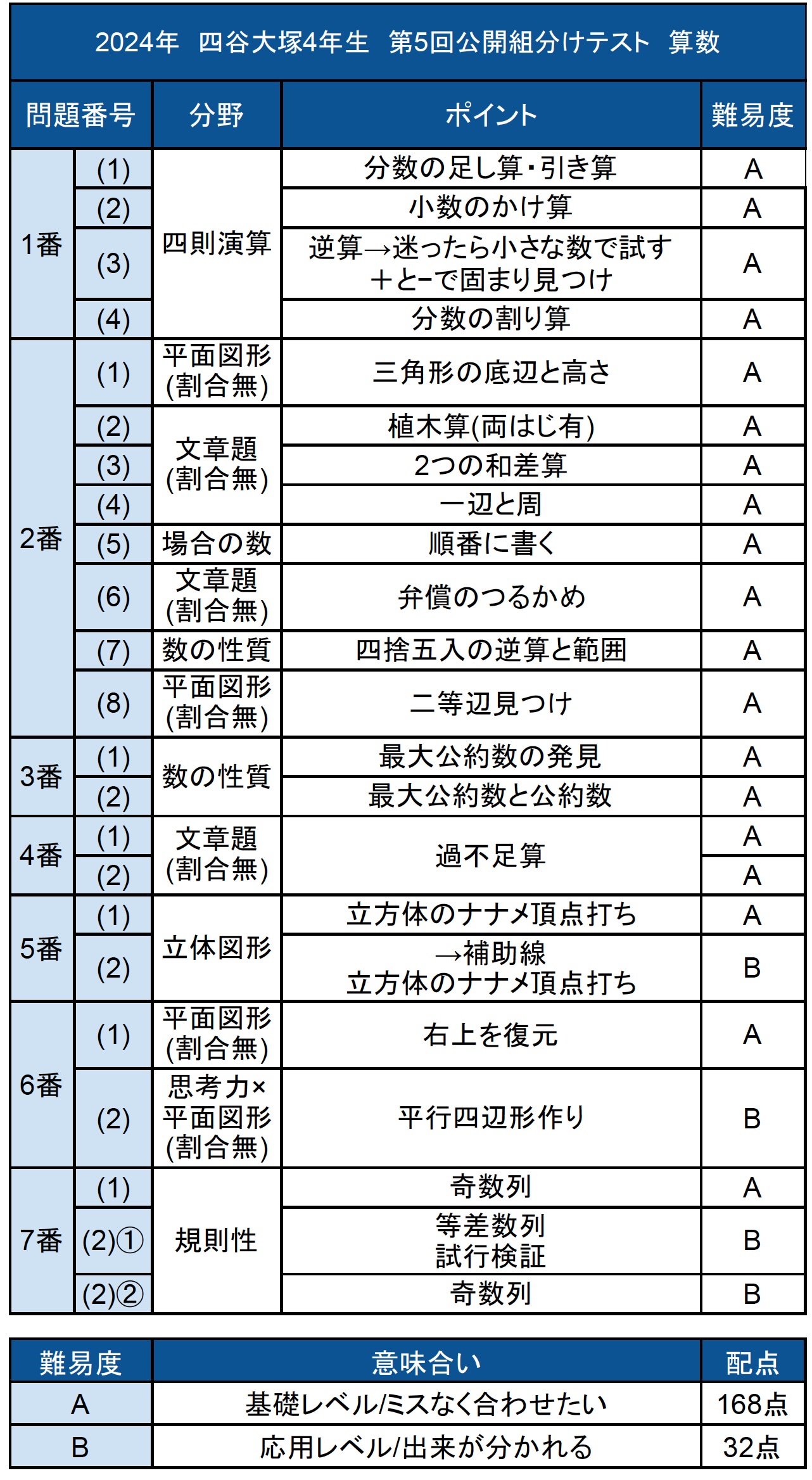 2024年9月1日実施、四谷大塚4年生第5回公開組分けテストの算数解説・難易度・所感を公開中です。