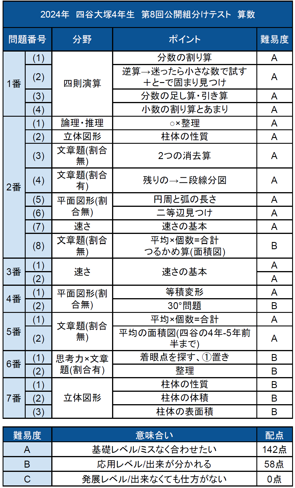 四谷大塚4年生 第8回公開組分けテストの所感・難易度分析