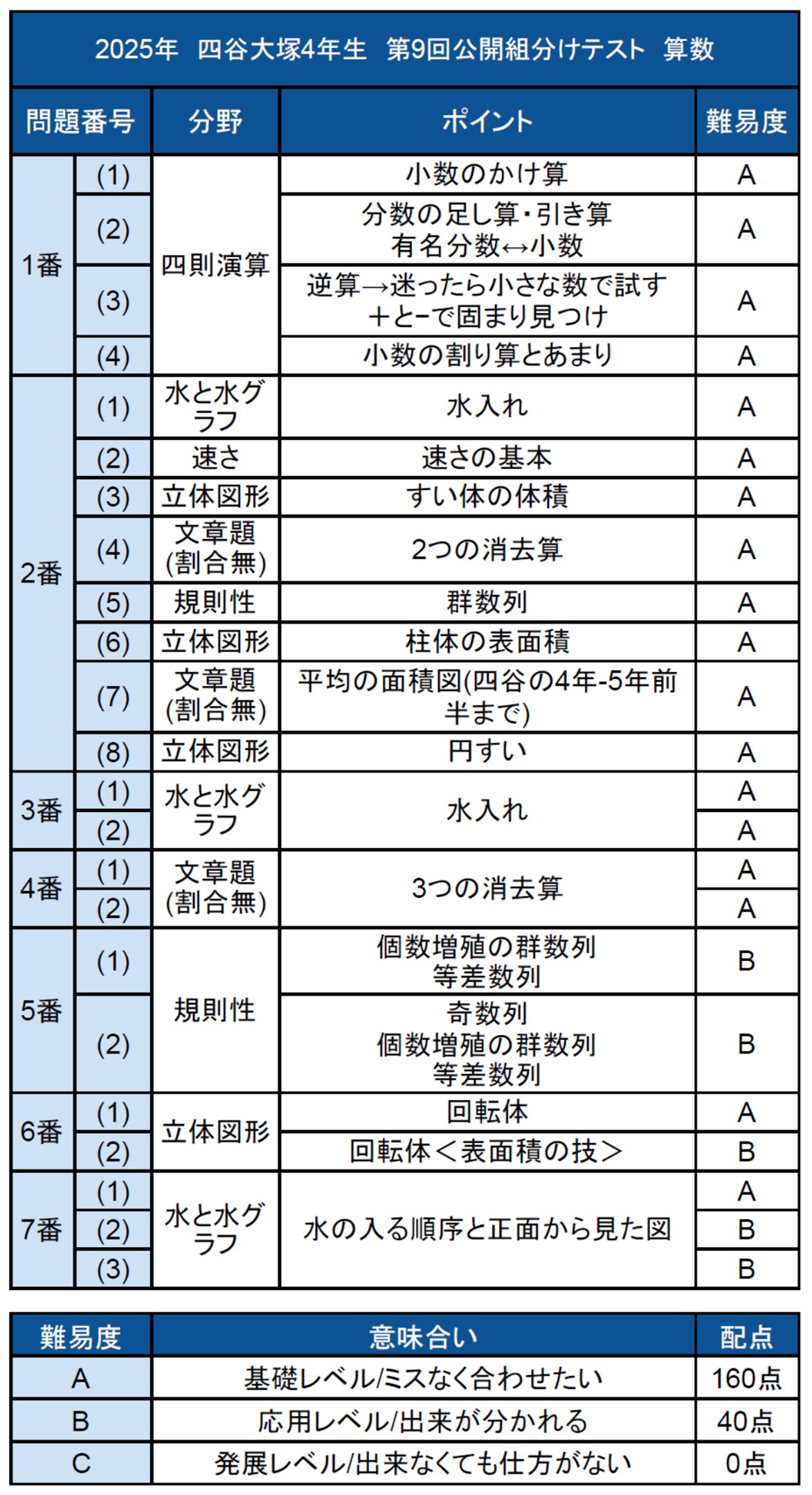 四谷大塚4年生 第9回公開組分けテストの所感・難易度分析