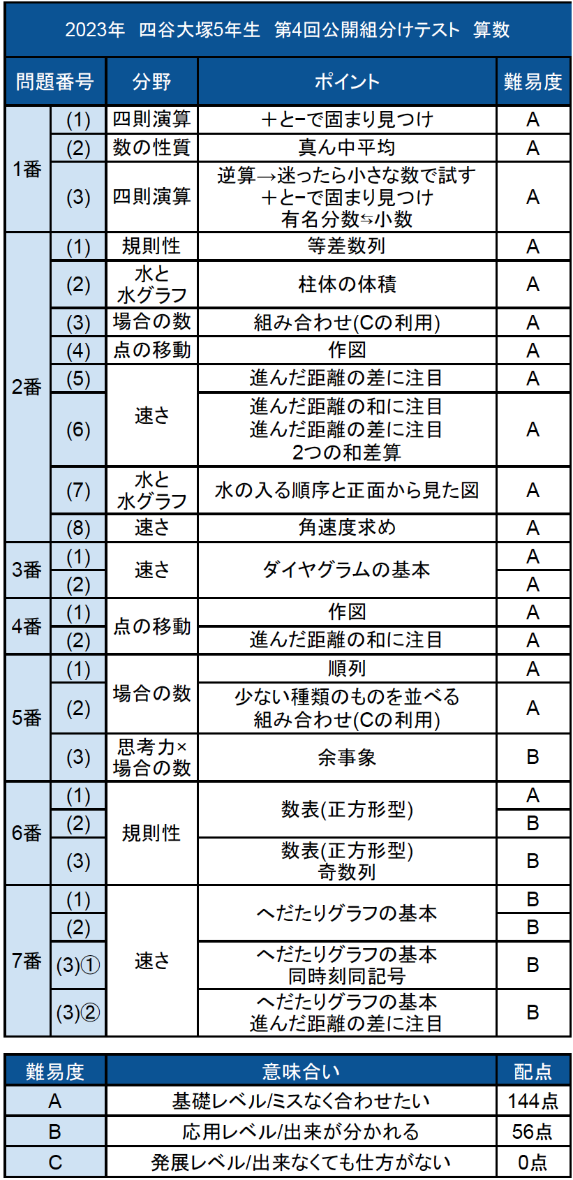 四谷大塚5年生 第4回公開組分けテストの所感・難易度分析