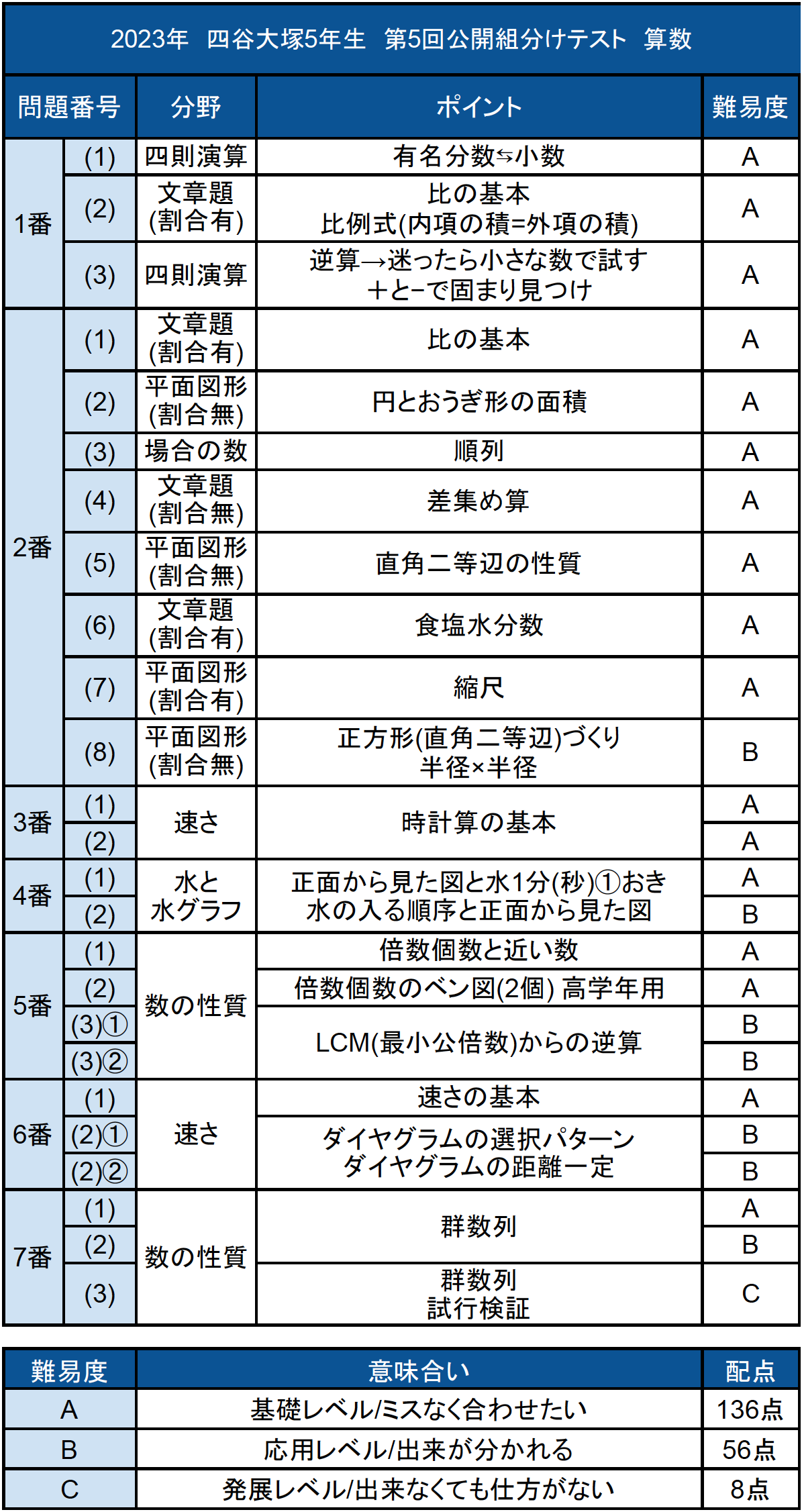 四谷大塚5年生 第5回公開組分けテストの所感・難易度分析