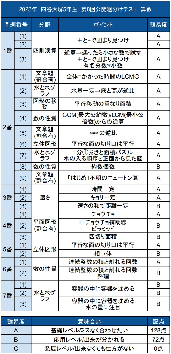 四谷大塚5年生 第8回公開組分けテストの所感・難易度分析