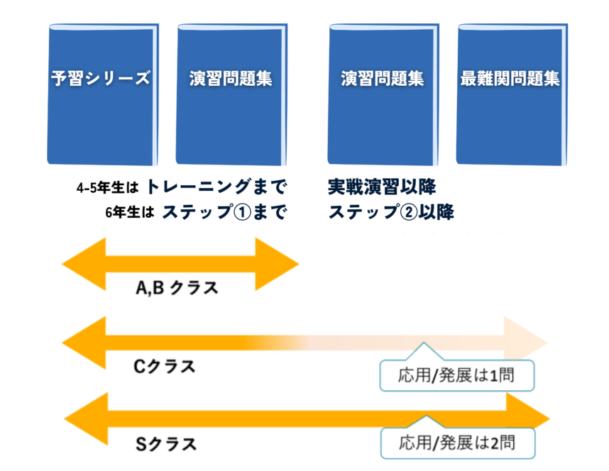 ABクラスは「予習シリーズ」が中心、「演習問題集」のトレーニングまでで構成される